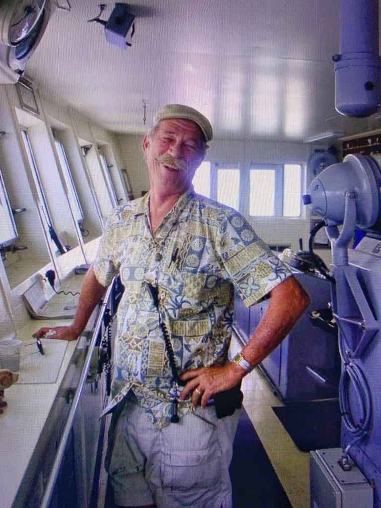Capt. Dave “Kawika” Lyman standing on the bridge of the SS KAUAI. Mahalo to Capt. Bob Buell for the photo.